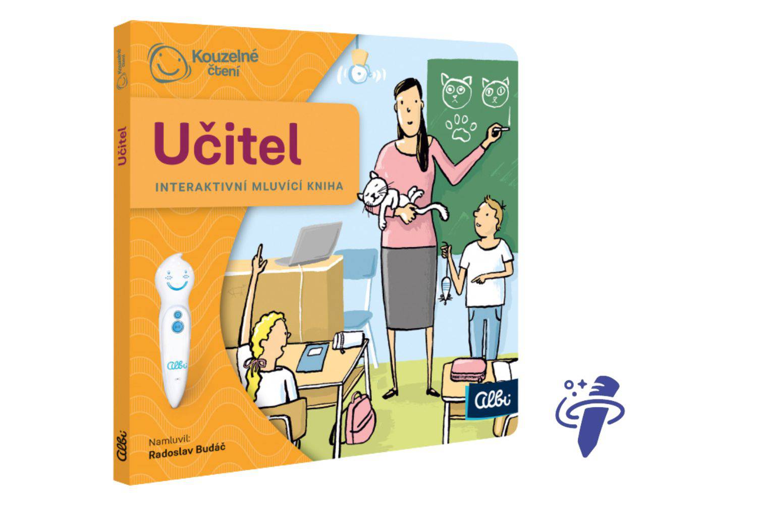 Interaktivní mluvící mini kniha Učitel seznámí děti od 5 let s povoláním učitele. S Elektronickou Albi tužkou se podívají nejen do třídy a do kabinetu, ale i na lyže nebo na výlet do historie.