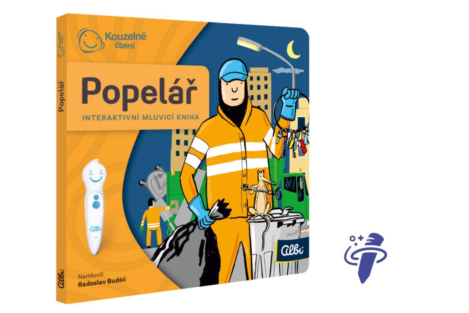 Mluvící mini kniha Popelář seznámí děti od 5 let s povoláním popeláře. S Elektronickou Albi tužkou zjistí, jakými auty popeláři jezdí, v kolik musí ráno vstávat a co se vlastně děje s odpadky.
