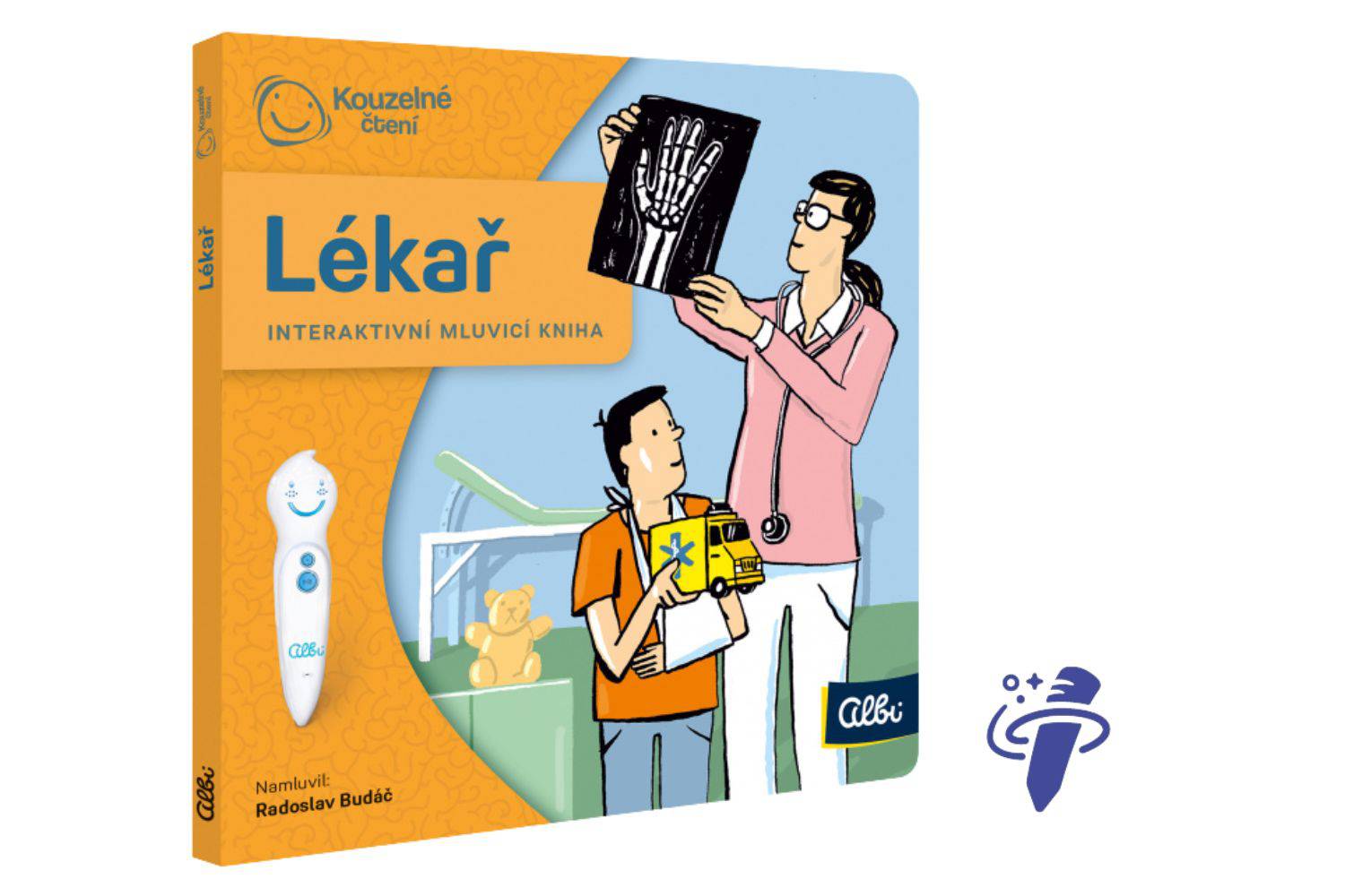 Interaktivní mluvící mini kniha Lékař seznámí děti od 5 let s povoláním lékaře. S Elektronickou Albi tužkou poznají, jak to vypadá u dětského lékaře. Dozví se, jak se léčí alergie, jak funguje rentgen či fonendoskop.