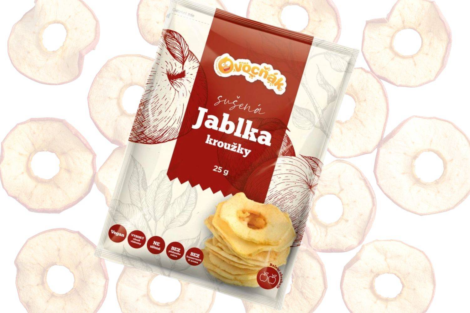 Ovocňák ručně vybírá jen ta nejhezčí jablka. Po tom, co jablka usuší, se zmenší a výsledný pytlík s kroužky a konečně vypadají jako malá svačinka. Buďte si však jistí, že je pořádná a dodá vašemu tělu potřebnou energii. Jablečné plátky suší šetrně, aby si zachovaly co nejvíce vitamínů i minerálních látek, a ze stejného důvodu je balí v ochranné atmosféře. Není to žádná věda. Příroda totiž většinu zařídí za nás. Stačí ji jen respektovat.